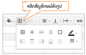 4. เครื่องมือปรับแต่งเซลล์ หรือช่องตาราง โดยสามารถปรับแต่งสี  เส้นขอบ และการจัดเรียงตัวอักษร ได้รวมถึงการผสานเซลล์ด้วย