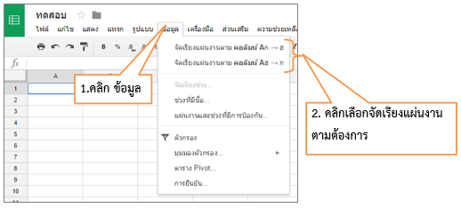 5. เครื่องมือจัดเรียงแผ่นงาน เมื่อไปที่เมนู ข้อมูล (Data) จะสามารถ จัดเรียงแผ่นงานให้เรียงลำดับตามตัวอักษรได้ เหมาะสำหรับ การจัดการข้อมูลที่มีลักษณะเป็นรายชื่อ