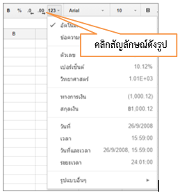 2. เครื่องมือปรับแต่งรูปแบบตัวเลข สามารถกำหนดลักษณะของ ตัวเลขในรูปแบบต่าง ๆ ได้ เช่น สกุลเงิน ร้อยละ ทศนิยม วันที่  เวลา เป็นต้น
